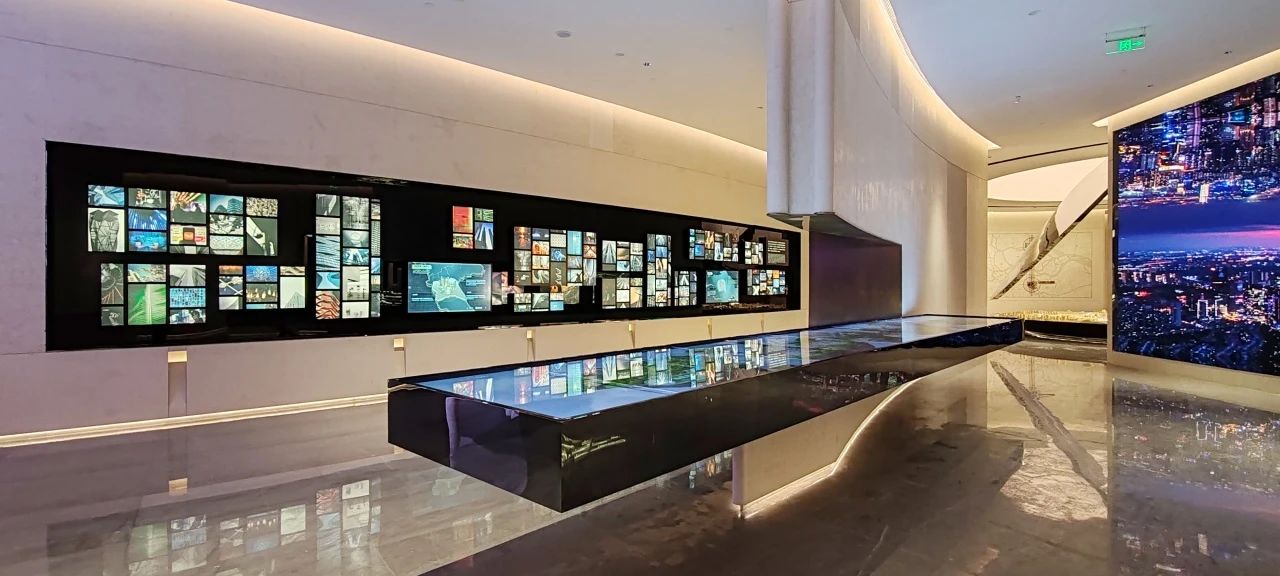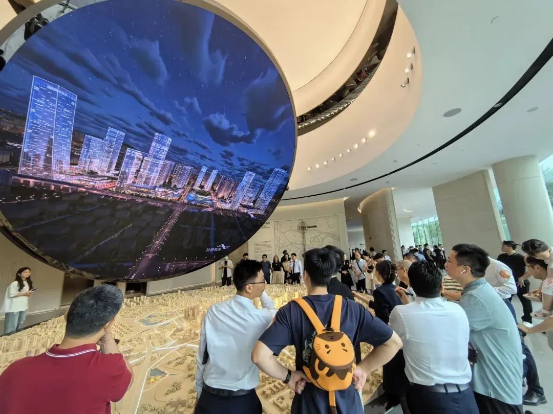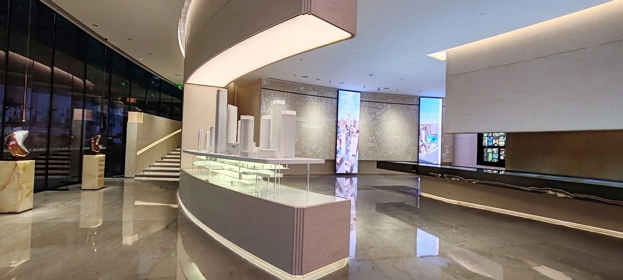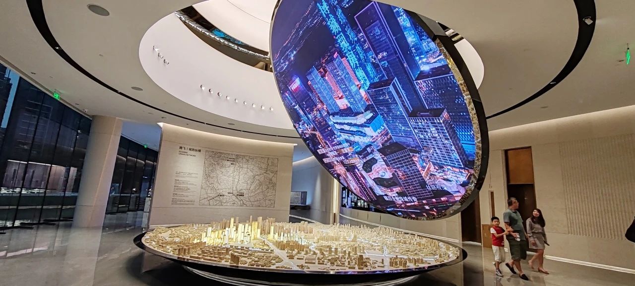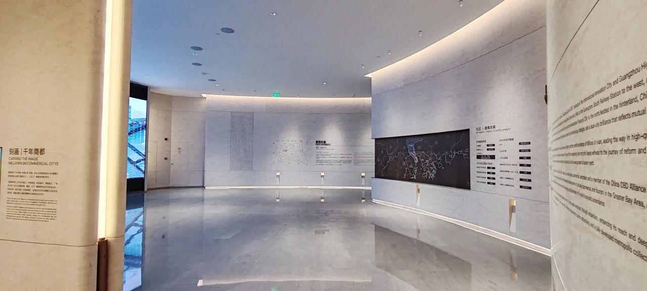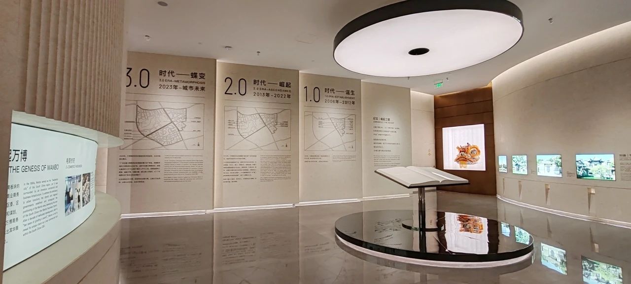 同時也設(shè)有精心設(shè)計的圖文展示墻,詳細記錄了長隆萬博片區(qū)的發(fā)展歷程和未來規(guī)劃,從萬博片區(qū)到項目自身,層層遞進,即使非廣州本地人也能迅速了解板塊情況。從一樓,可以清晰看到番禺的發(fā)展,看到萬博CBD從1.0到3.0的一路進化與迭代。從2006年萬博商務(wù)區(qū)概念面世,再到2013年控規(guī)獲批,直至2023年完成擴容。擴容后的萬博商務(wù)區(qū),由1.5平方公里擴展至7.2平方公里,涵蓋漢溪長隆、萬博、里仁洞三大板塊,并統(tǒng)稱為“廣州南CBD”。360°沉浸式影廳,給大家描繪萬博未來城市的生活方式。