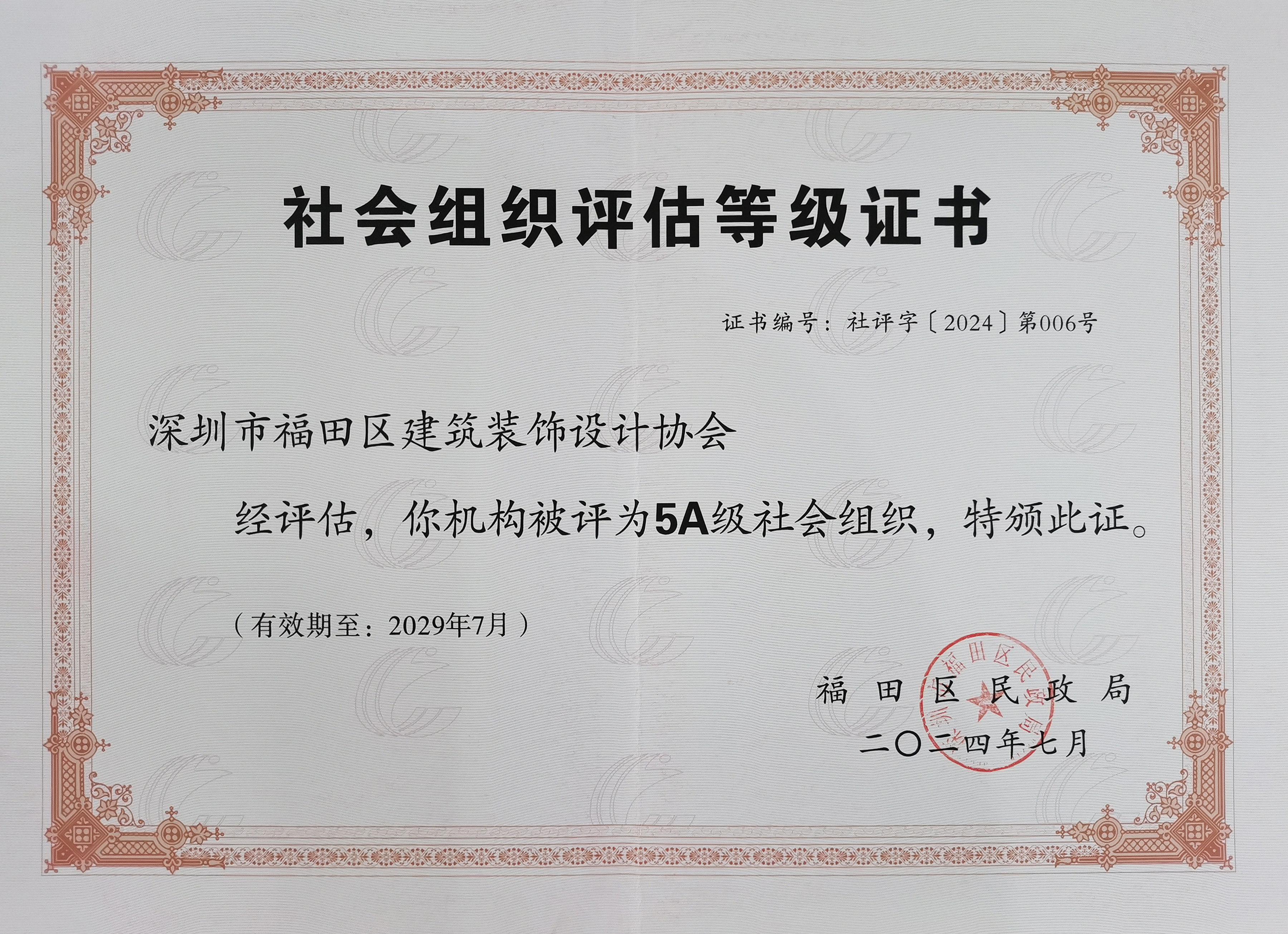 協(xié)會獲頒5A級社會組織牌匾與證書