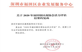 繼在2018年福田轄區商協會活力評估中獲得第43名后,我會繼續憑借在會員服務和行業服務方面的優秀表現,在2020年福田轄區商協會活力評估中獲得第36名。