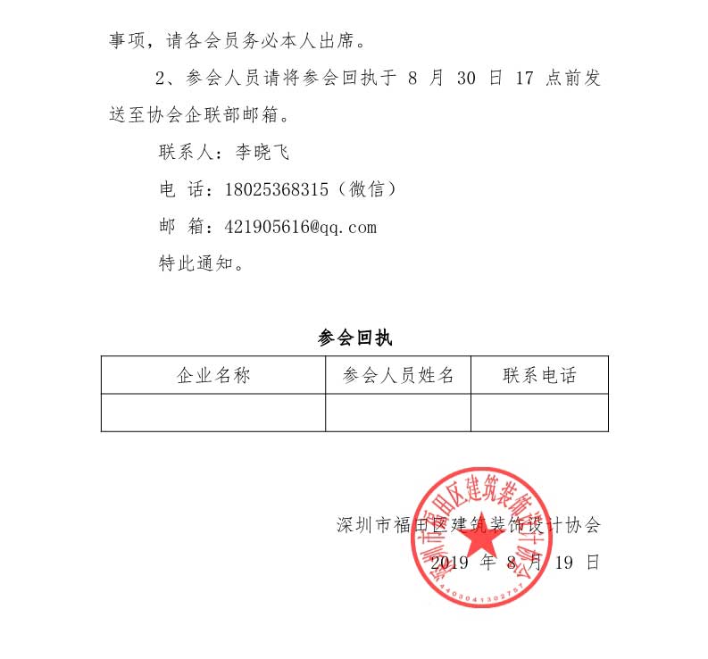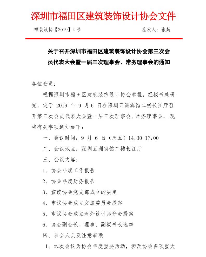 關于召開深圳市福田區(qū)建筑裝飾設計協(xié)會第三次會員代表大會暨一屆三次理事會、常務理事會的通知