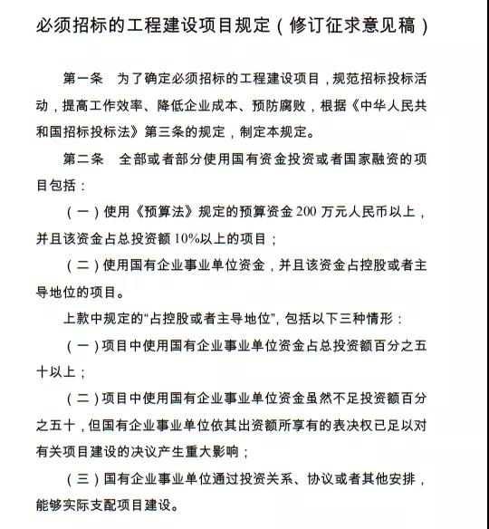 4月20日,國(guó)家發(fā)改委發(fā)布《必須招標(biāo)的工程建設(shè)項(xiàng)目規(guī)定》(修訂征求意見(jiàn)稿),對(duì)2018版規(guī)定進(jìn)行補(bǔ)充修改: