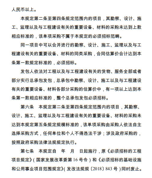 《必須招標(biāo)的工程項(xiàng)目規(guī)定》