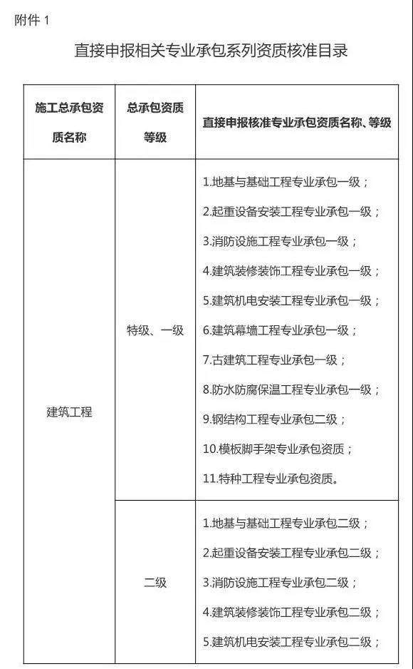 《通知》提出:對具有特級、一級、二級建筑工程和市政公用工程施工總承包資質的企業,允許其直接申報相關專業承包的系列資質核準,業績可以用總承包工程中自行組織施工的專業工程指標認定。 直接申報相關專業承包系列資質核準目錄 深圳市住房和建設局關于繼續開展對信用良好的建筑業企業核準專業承包資質試點工作的通知 深建市場〔2020〕2號 各區(新區)住房和建設局、深汕合作區住房建設和水務局,各有關單位: 一、根據《中共中央 國務院關于支持深圳建設中國特色社會主義先行示范區的意見》《中共廣東省委 廣東省人民政府關于支持深圳建設中國特色社會主義先行示范區的若干重大措施》的有關精神,經省住房和城鄉建設廳同意,我局將繼續開展對信用良好的建筑業企業核準專業承包資質試點工作,進一步探索建筑業企業資質管理新模式。 二、對取得我省資質許可,誠實守法,三年內無發生過質量安全事故、三年內無不良行為記錄、具有相關專業技術能力的信用良好企業,直接核準專業承包資質。即對具有特級、一級、二級建筑工程和市政公用工程施工總承包資質的企業,允許其直接申報相關專業承包的系列資質核準(《直接申報相關專業承包系列資質核準目錄》詳見附件1),業績可以用總承包工程中自行組織施工的專業工程指標認定。 試點工作有效期至2020年6月30日。 附件: 1.直接申報相關專業承包系列資質核準目錄 2.誠信申報承諾書 深圳市住房和建設局 2020年4月16日 (聯系電話:83788309) 附件2:
