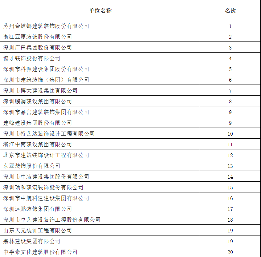 2020年度行業綜合數據統計工作分為裝飾、幕墻、設計三類,現將2020年度建筑裝飾行業數據統計結果名單予以公示。