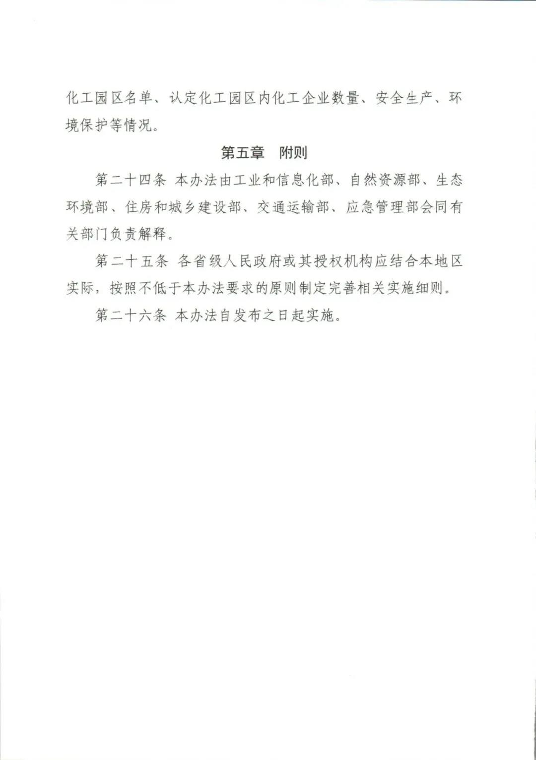 工業(yè)和信息化部 自然資源部 生態(tài)環(huán)境部 住房和城鄉(xiāng)建設(shè)部 交通運(yùn)輸部 應(yīng)急管理部 關(guān)于印發(fā)《化工園區(qū)建設(shè)標(biāo)準(zhǔn)和認(rèn)定管理辦法(試行)》的通知