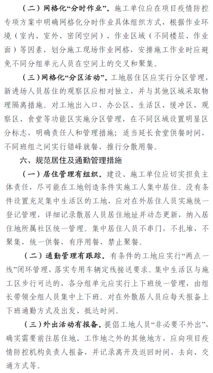 3.新進場工人必須在獨立設置的觀察居住區居住四天,核酸檢測“四天四檢”均無異常后方可進入其他區域居住,期間不得與原有工地人員混居。