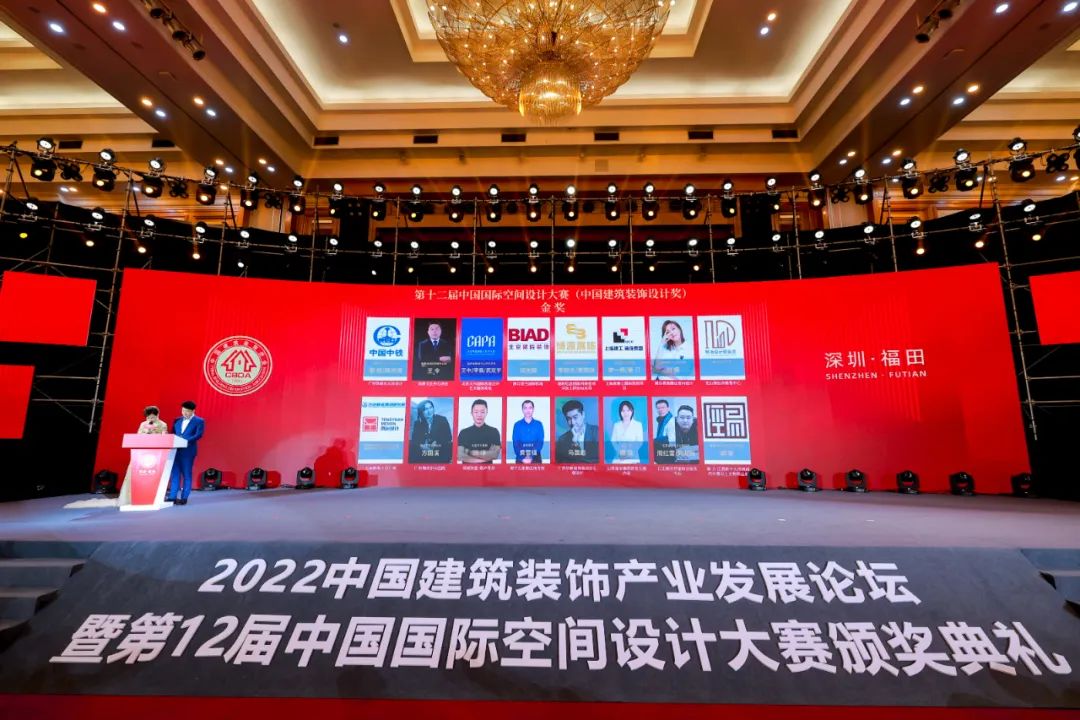 11月15日,2022中國(guó)建筑裝飾產(chǎn)業(yè)發(fā)展論壇暨第十二屆中國(guó)國(guó)際空間設(shè)計(jì)大賽頒獎(jiǎng)典禮在深圳福田五洲賓館圓滿舉辦。