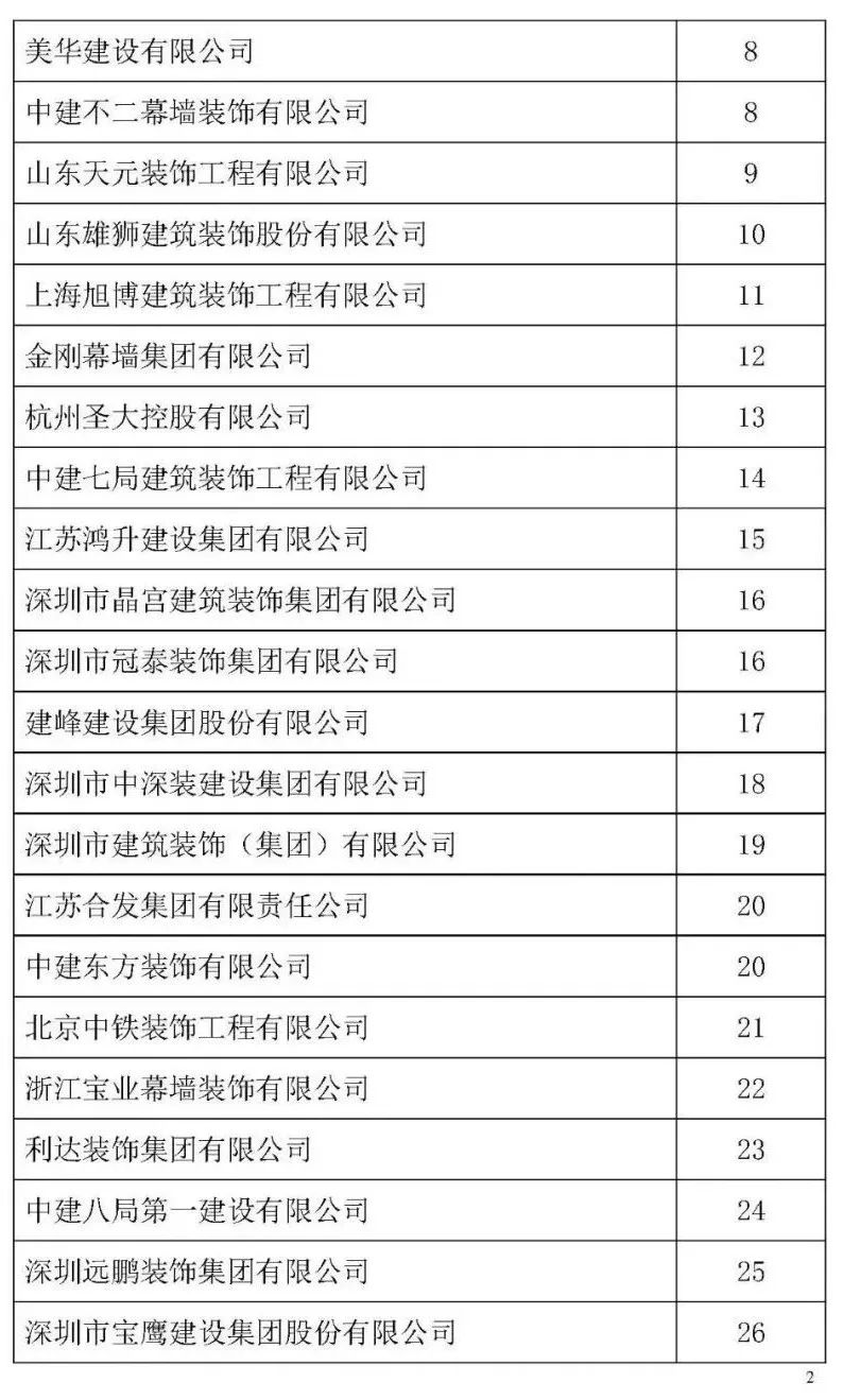 根據中裝協《關于開展2021年度中國建筑裝飾協會行業綜合數據統計工作的通知》(中裝協 [2022]24號文件)及文件中所確定的工作原則和統計規則, 中國建筑裝飾協會組織開展了2021年度中國建筑裝飾行業綜合數據統計工作,此次綜合數據統計工作分為裝飾、幕墻、設計、建材四類,現將2021年度中國建筑裝飾協會行業綜合數據統計幕墻類結果名單予以公示,公示期7天。