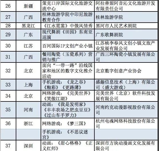 附件:文化和旅游部2019年度“一帶一路”文化產業和旅游產業國際合作重點項目公示名單