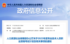 近日,人力資源社會保障部辦公廳印發《關于2023年度專業技術人員職業資格考試計劃及有關事項的通知》,公布了2023年度專業技術人員職業資格考試計劃。