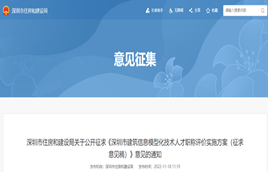 為加快推進(jìn)深圳市建筑信息模型(BIM)深化應(yīng)用,11月18日,深圳市住建局發(fā)布關(guān)于公開征求《深圳市建筑信息模型化技術(shù)人才職稱評價實施方案(征求意見稿)》意見的通知。
