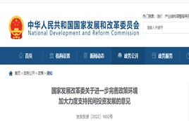 11月7日,國家發展改革委發布進一步完善政策環境加大力度支持民間投資發展的意見。